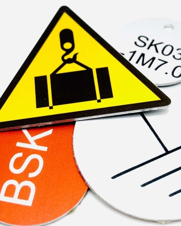 Kunststoffschilder bestehen aus zwei Materialschichten, die in verschiedenen Farben ausgeführt werden - einem Grundmaterial und einer Deckschicht. Durch eine mechanische CNC-Gravur oder einer berührungslosen Lasergravur wird die Deckschicht abgetragen. Das Grundmaterial wird sichtbar. Das Ergebnis ist ein zweifarbiges Schild, wobei die Grundfarbe die Schriftfarbe darstellt und die Deckschickt die eigentliche Schildfarbe ist.
